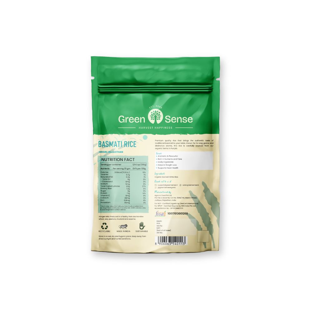 Experience the unmatched aroma and taste of Green Sense Organic Basmati Rice – grown naturally in the fertile plains of India. Our long-grain basmati rice is 100% certified organic, non-GMO, and free from chemicals or pesticides. Perfect for biryanis, pulao, or daily meals, this premium basmati rice offers fluffy texture, rich flavor, and high nutritional value.