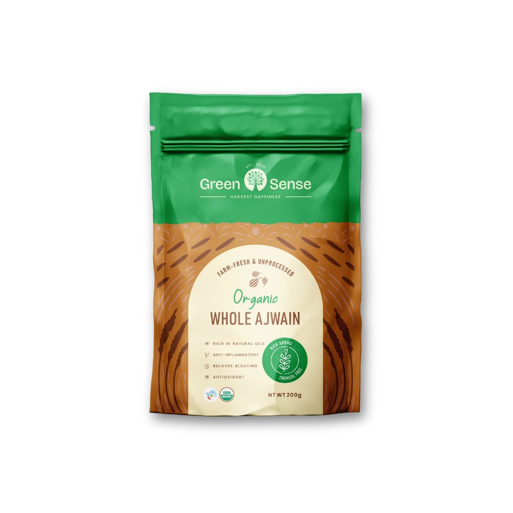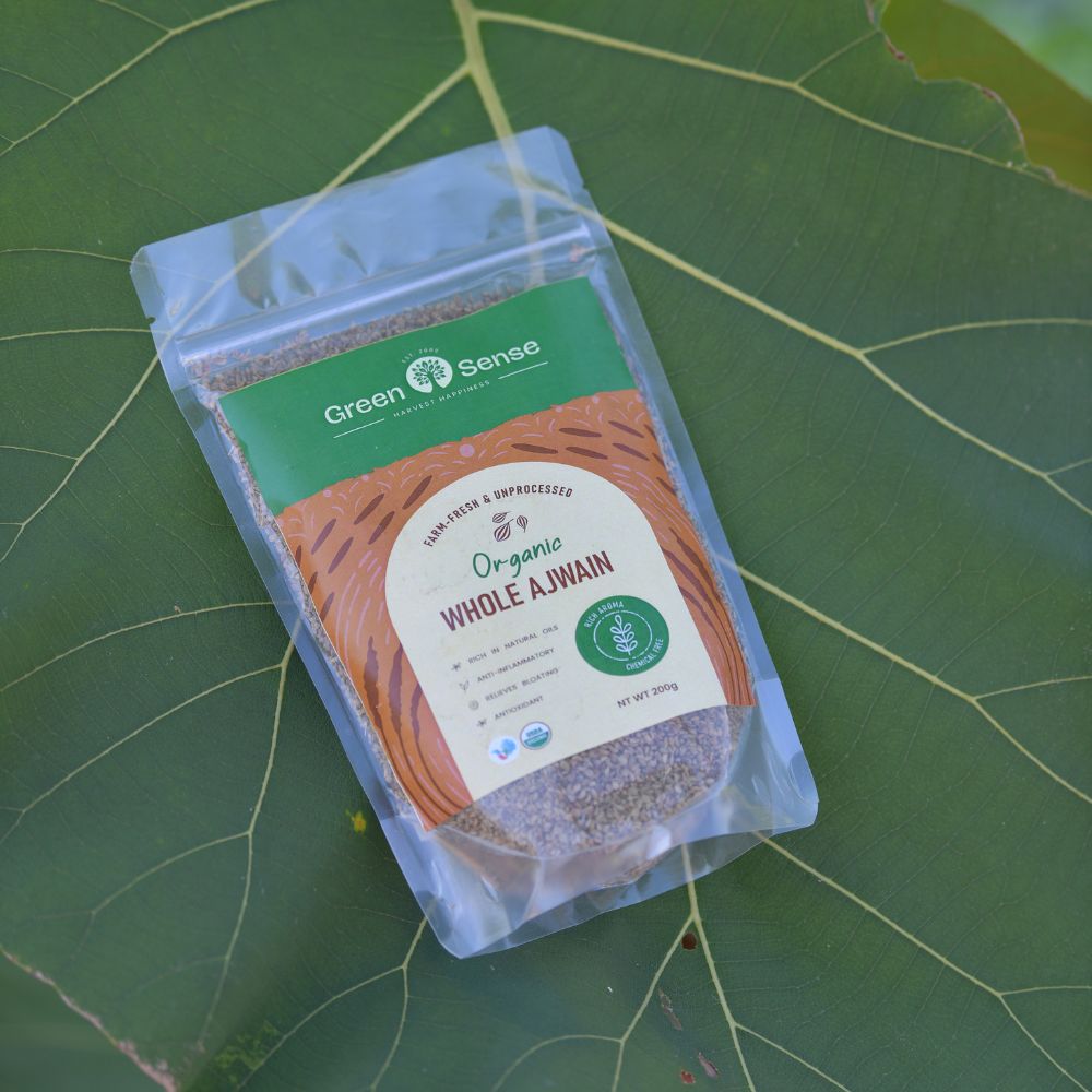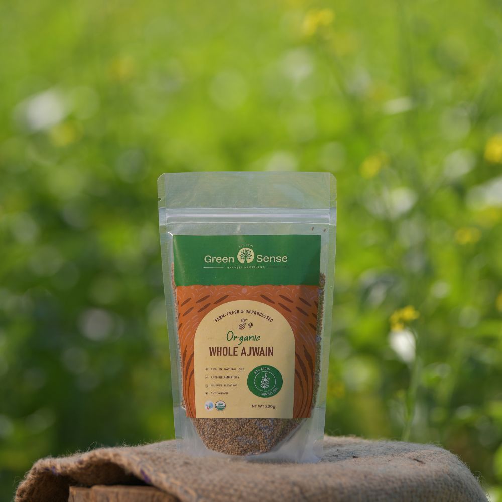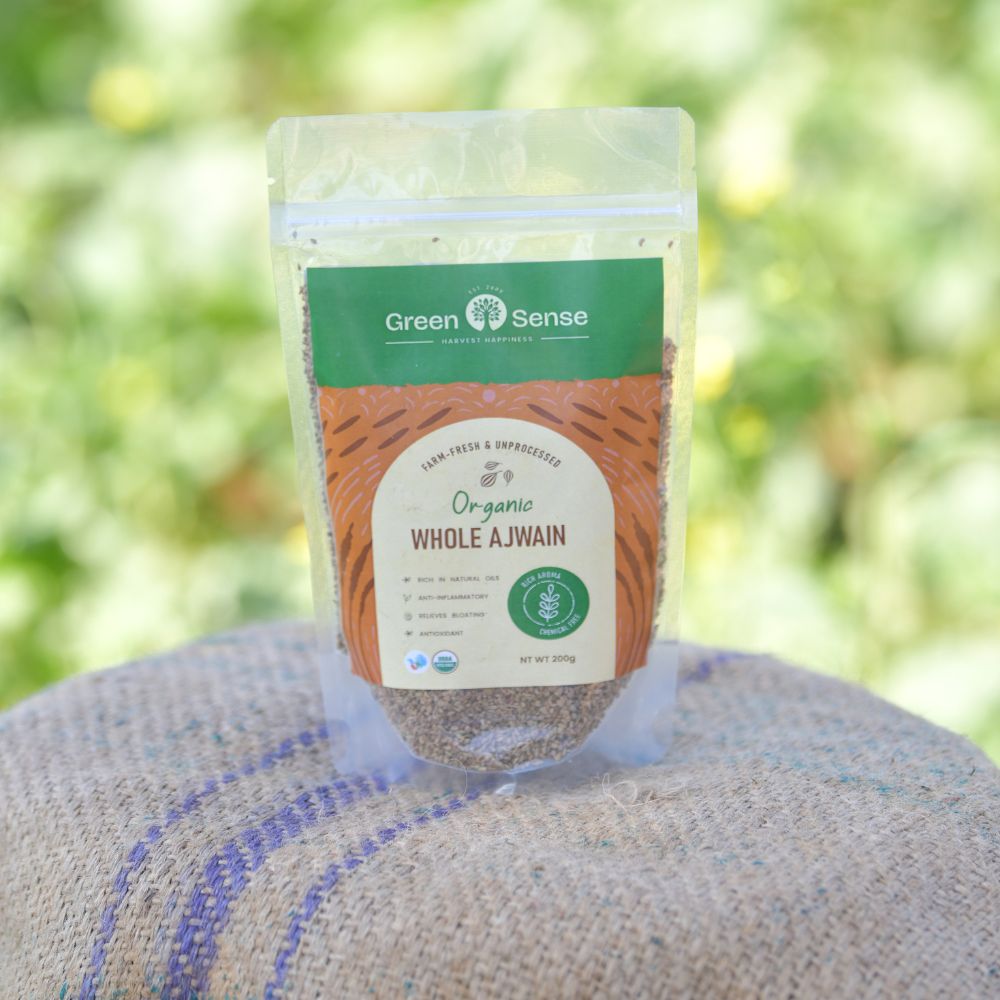 Organic Ajwain, also known as carom seeds, is a potent spice celebrated for its distinctive flavor and health benefits. Rich in essential oils and antioxidants, ajwain aids digestion, relieves bloating, and supports respiratory health. Sourced from organic farms, this spice retains its natural goodness, making it a pure and powerful addition to your culinary and wellness routines. Perfect for adding a warm, peppery note to dishes or for brewing into a soothing tea.