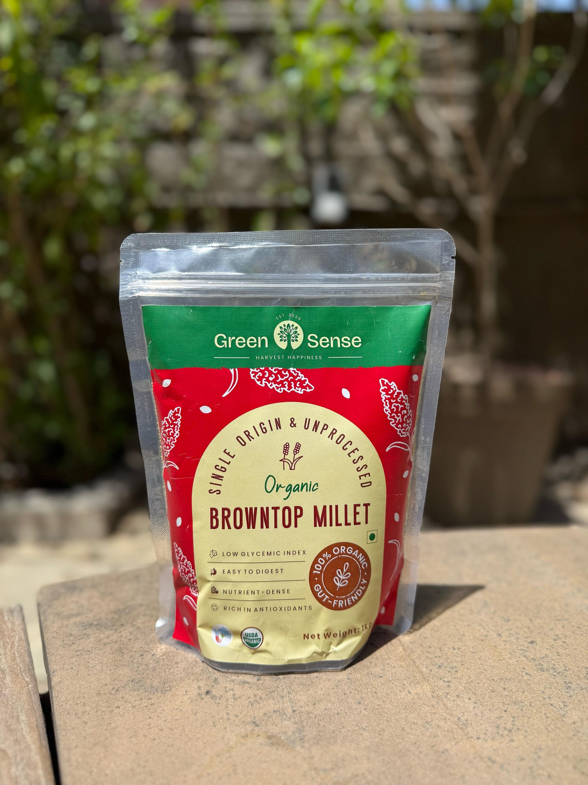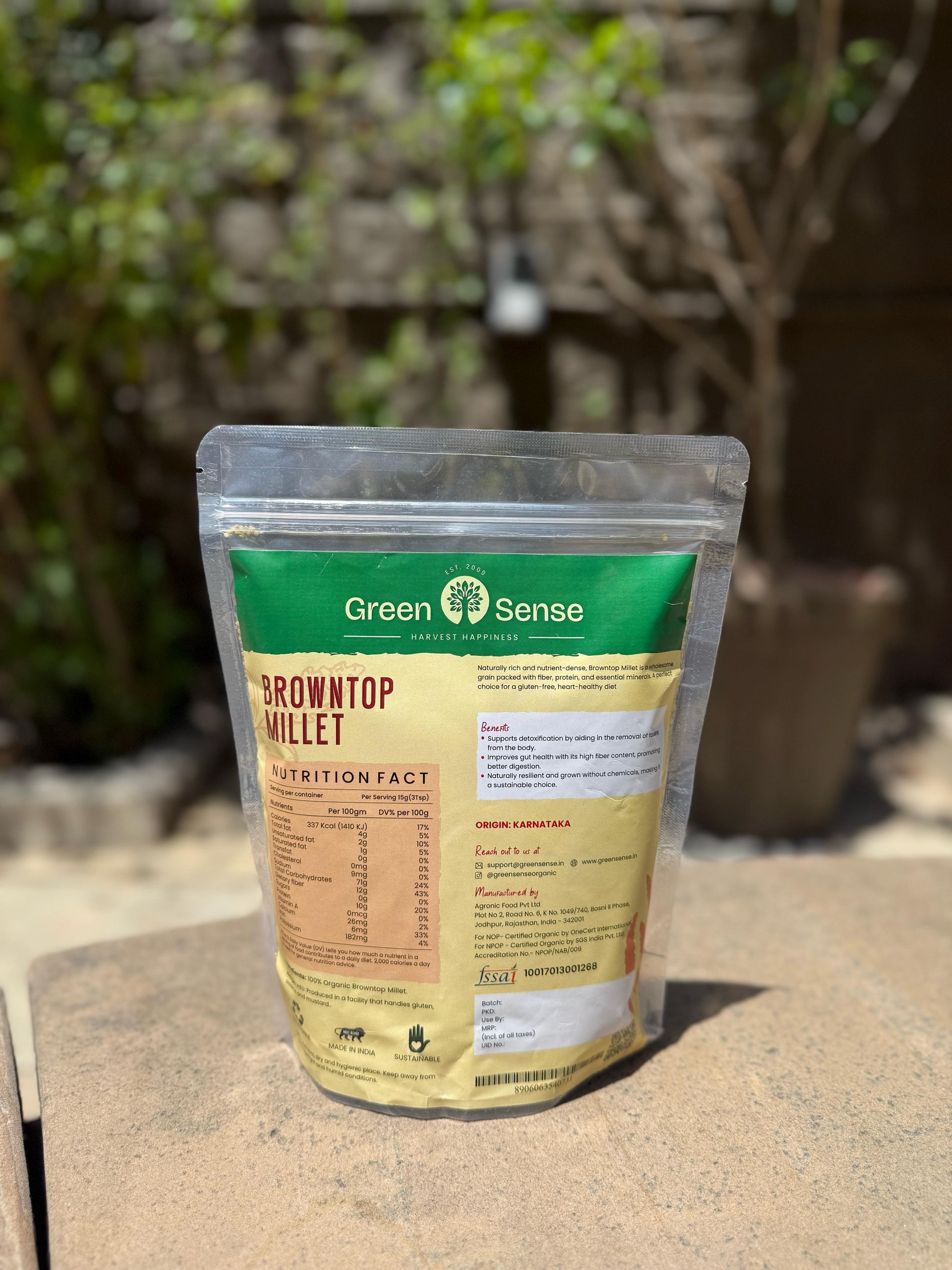 Browntop Millet is easy to digest and supports gut health due to its high fiber content. It is a sustainable crop, requiring minimal water and thriving in dry conditions, making it an eco-friendly food choice. This millet can be used in a variety of recipes, including porridge, dosa, upma, and even baked goods.
