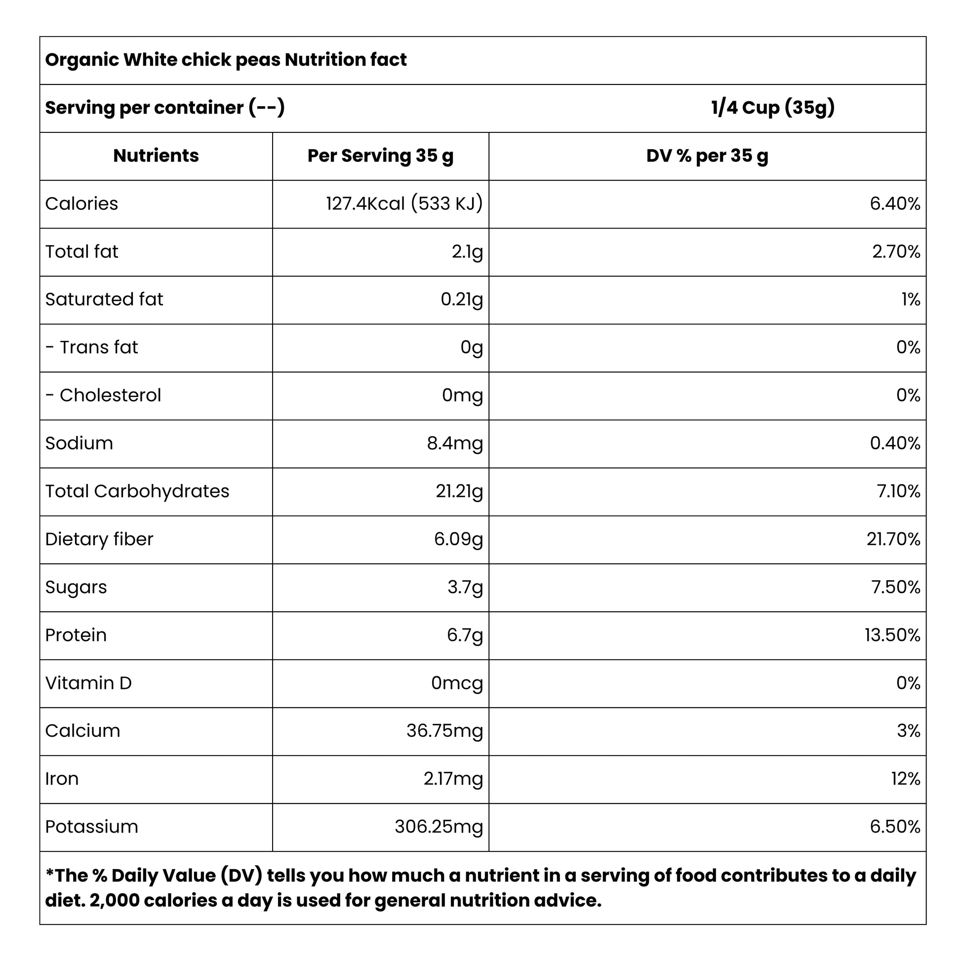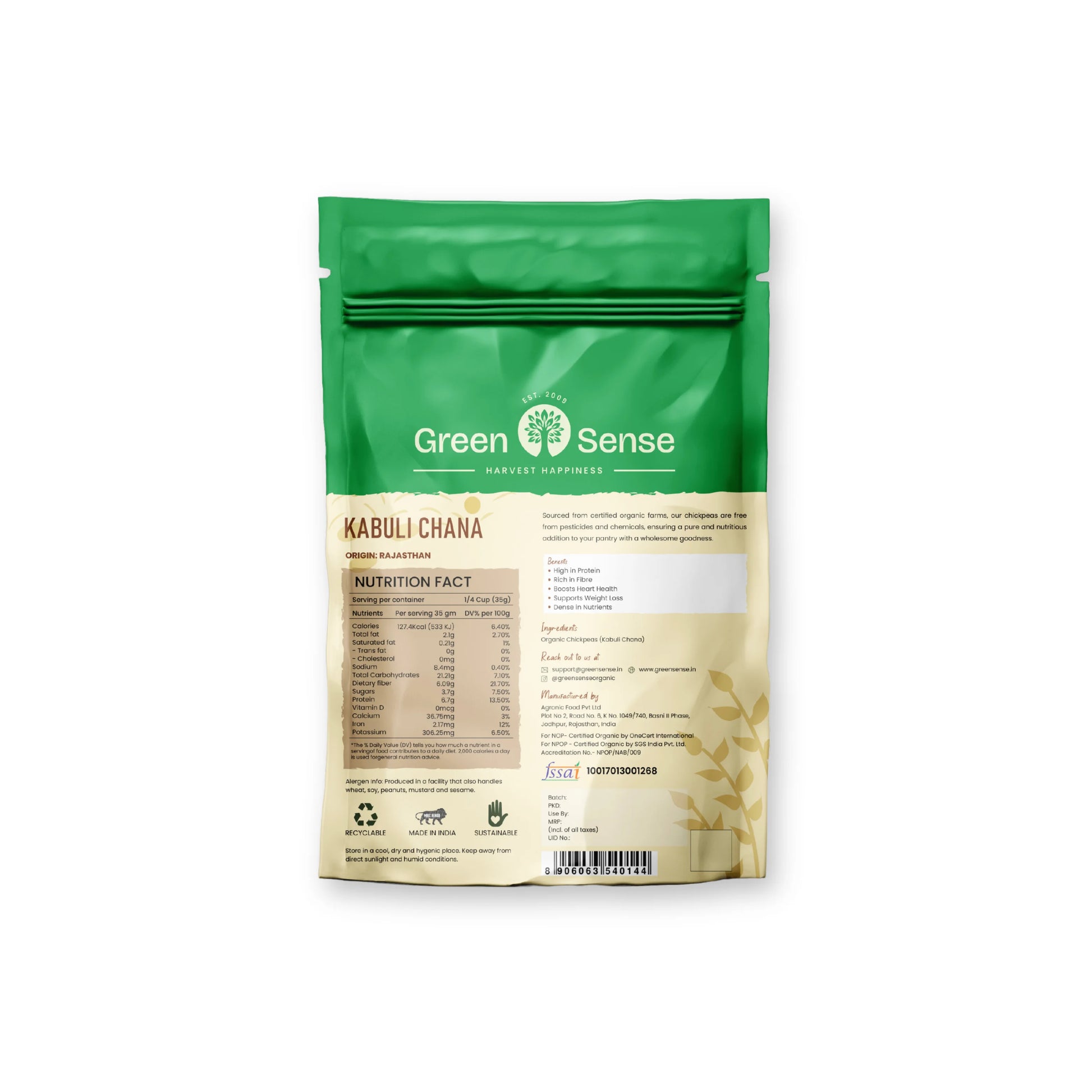 Packed with protein, fiber, and essential nutrients, Green Sense Organic Kabuli Chana (Chickpeas) is a pantry essential for every health-conscious kitchen. Grown organically without synthetic pesticides or fertilizers, our premium-quality chickpeas are perfect for making classic dishes like chole, hummus, and salads.