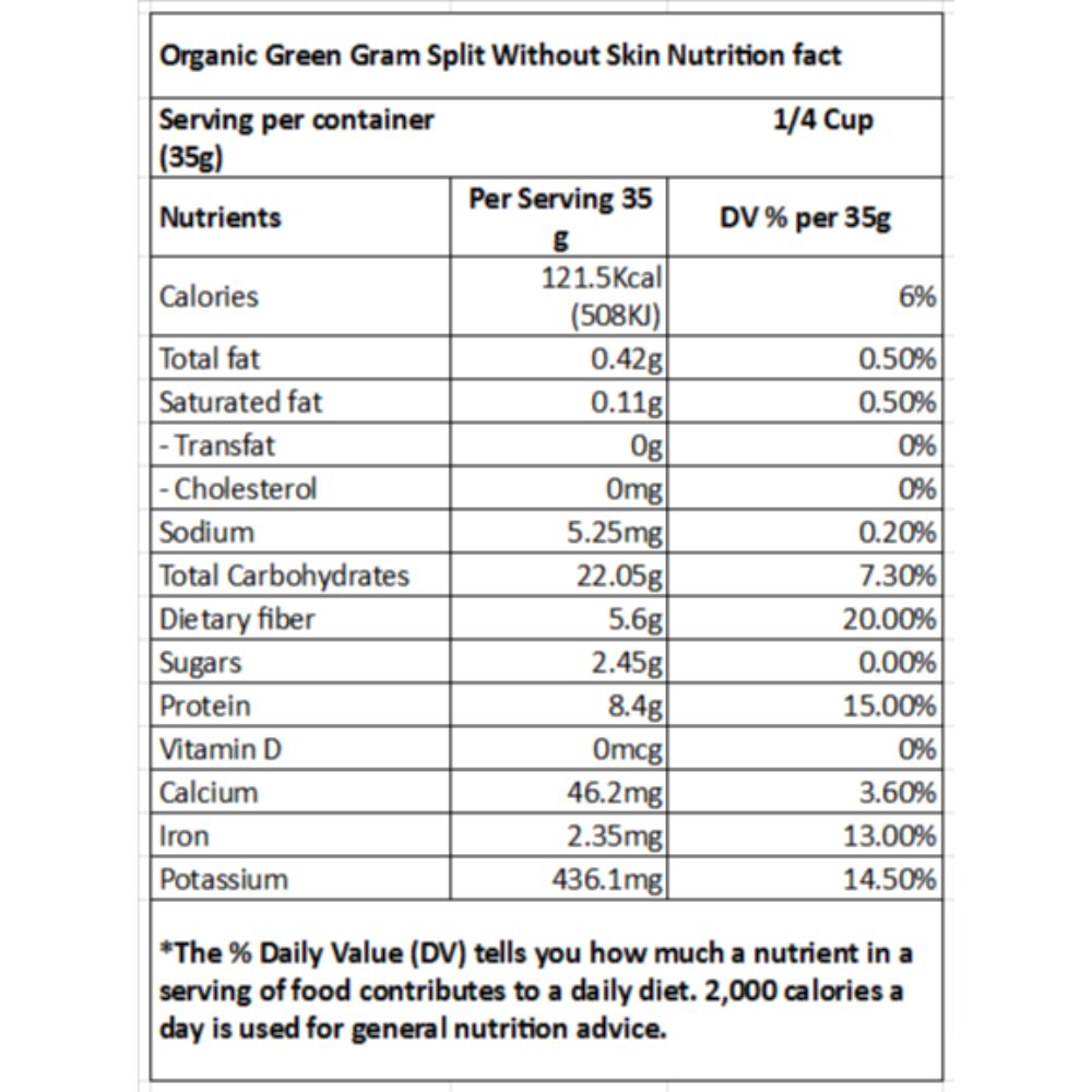 Introducing Green Sense Organic Green Gram Split Without Skin (Moong Mogar) – a versatile and nutritious addition to your kitchen. Our Moong Mogar is cultivated on certified organic farms without the use of pesticides or chemicals, ensuring you get only the purest product. This skinned green gram cooks quickly, making it ideal for busy days when you need a wholesome meal in minutes. With its mild flavor and smooth texture, it's perfect for creating creamy dals, hearty soups, and flavorful khichdis. Rich in protein, fiber, and essential nutrients, Green Sense Organic Moong Mogar supports a balanced and healthy diet. Elevate your meals with the natural goodness of our premium quality Moong Mogar.
